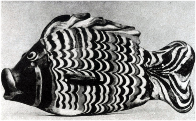 Сосуд в форме рыбы из Ахетатона (Эль-Амарны). Цветное сте...