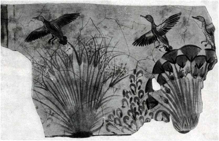 Заросли с летящими утками. Фрагмент росписи из дворца в А...