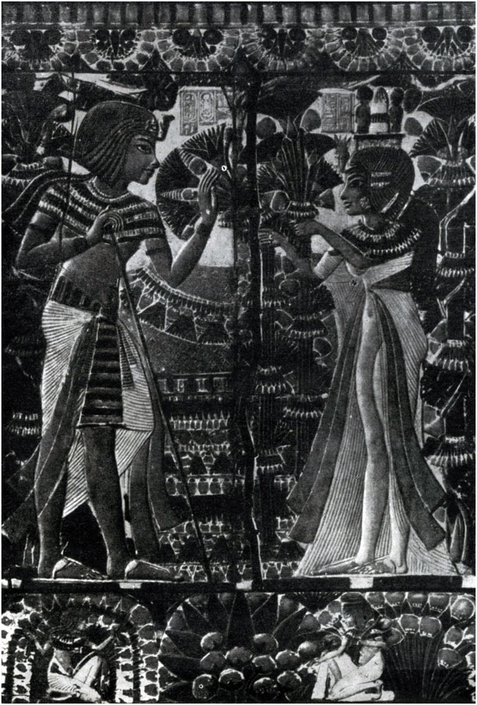 Тутанхамон с женой в саду. Рельеф на крышке ларца. Из гро...