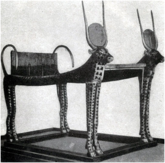 Кровать Тутанхамона с фигурами богини Хатор (в виде коров...
